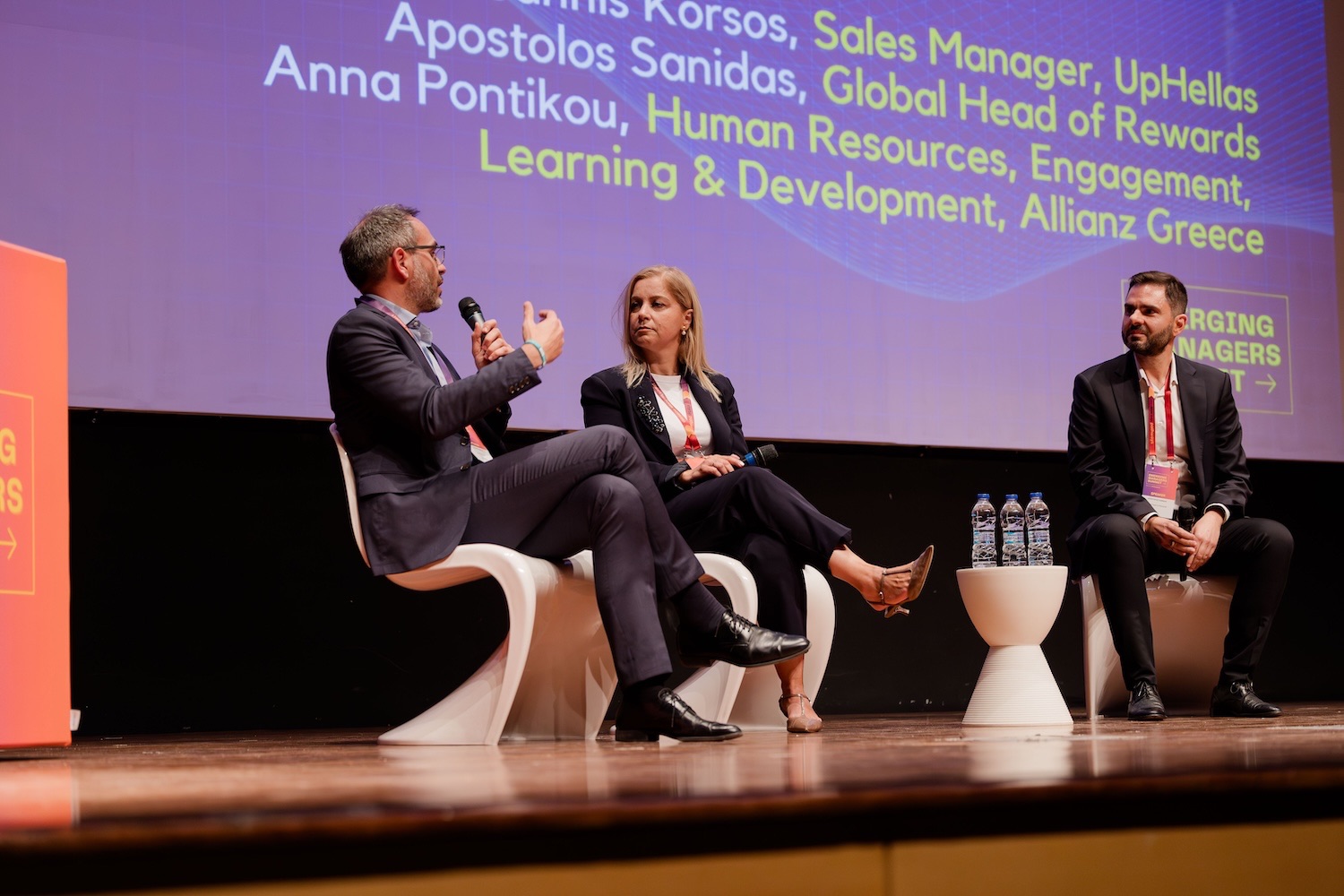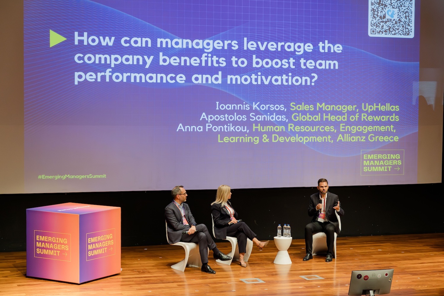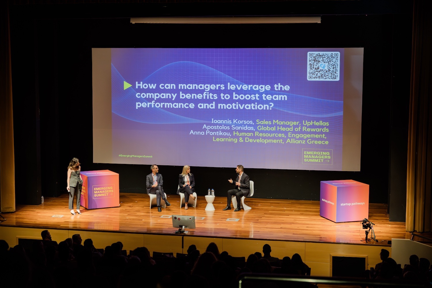 How can managers leverage the company benefits to boost team performance and motivation?, Panel Discussion, Ioannis Korsos, Sales Manager, UpHellas, and Apostolis Sanidas, Global Head of Rewards | Moderator: Anna Pontikou, HR, Engagement, Learning & Development, Allianz Greece