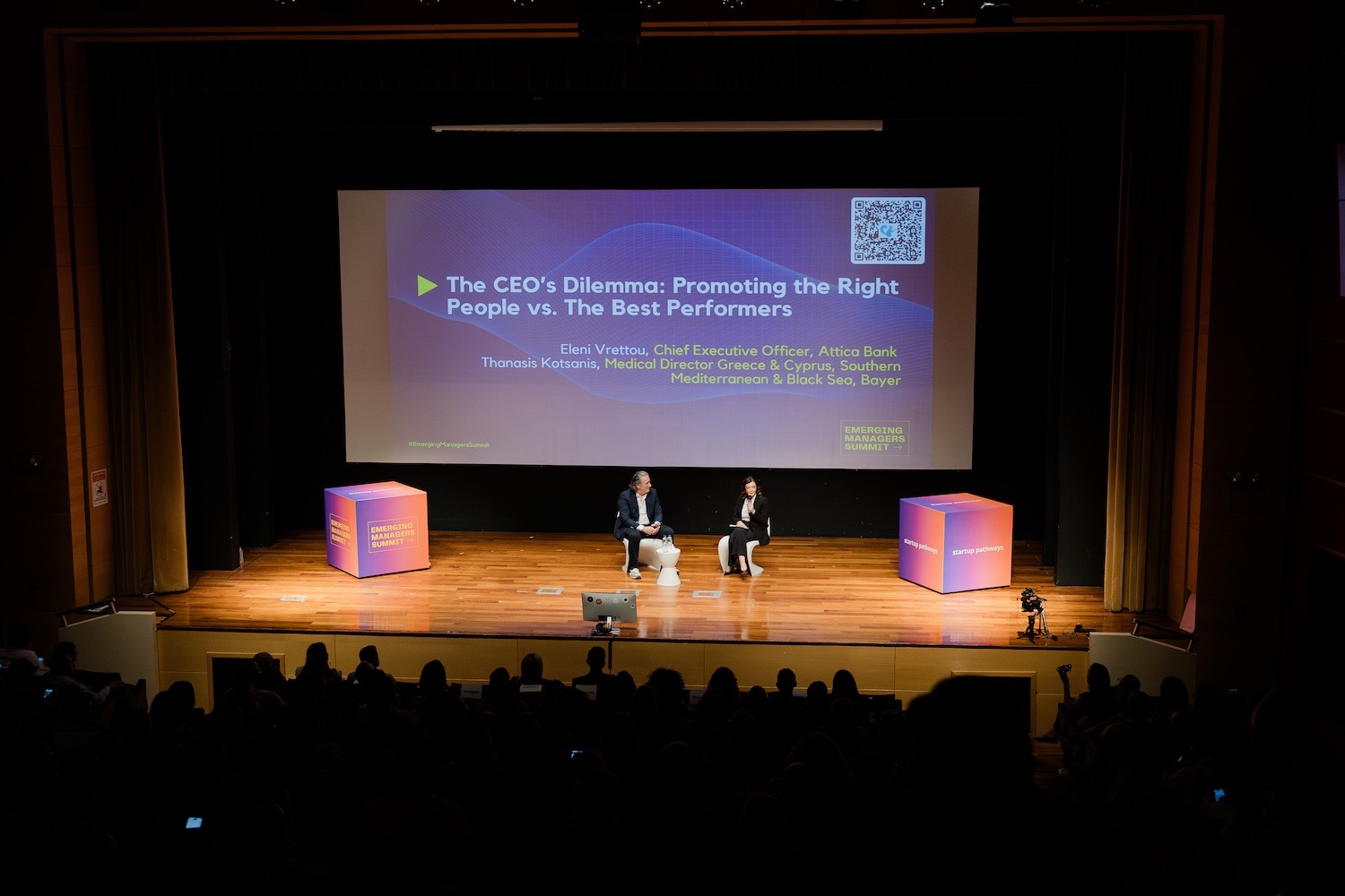 Promoting the Right People vs. the Best Performers, Fireside Chat, Eleni Vrettou, Chief Executive Officer, Attica Bank | Moderator: Thanasis Kotsanis, Medical Director Greece & Cyprus, Southern Mediterranean & Black Sea, Bayer