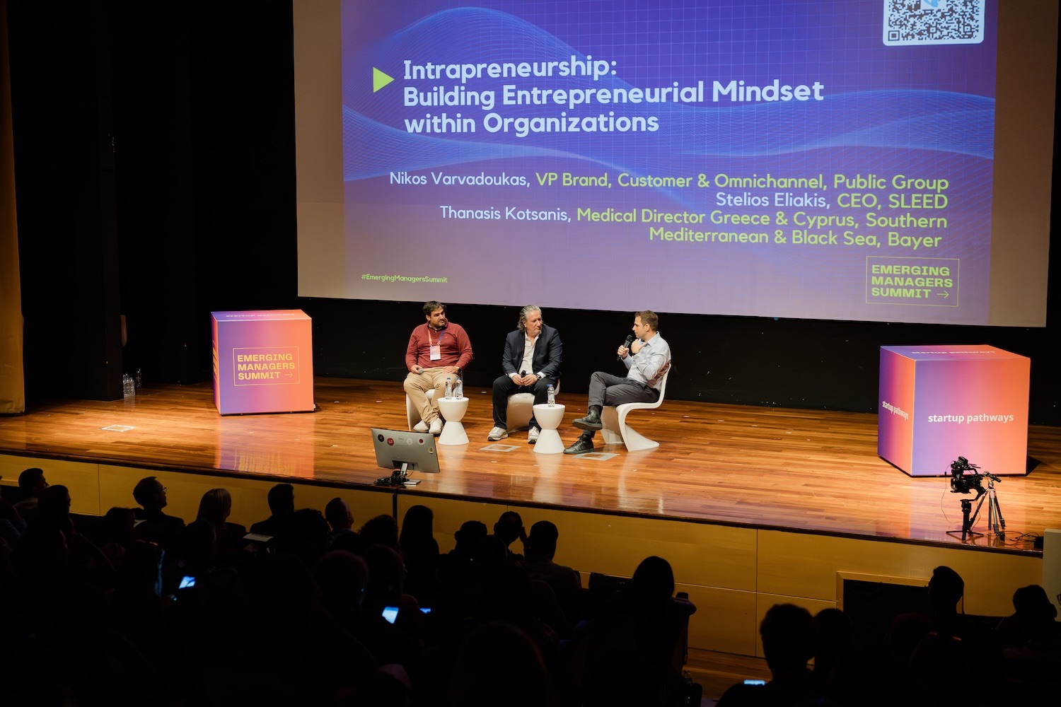 Intrapreneurship: Building Entrepreneurial Mindset within Organizations, Fireside Chat, Nikos Varvadoukas, VP Brand, Customer & Omnichannel, Public Group, and Stelios Eliakis, CEO, Sleed | Moderator: Thanasis Kotsanis, Medical Director Greece & Cyprus, Southern Mediterranean & Black Sea, Bayer